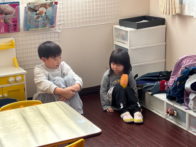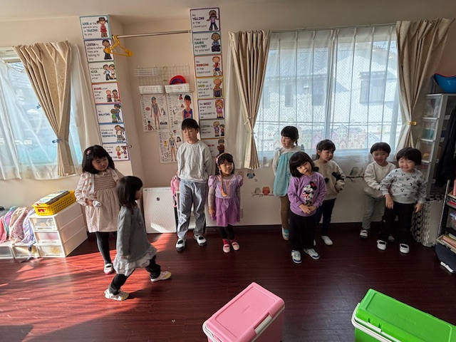 今日も英語タイムでは、身体を使ってゲームをしていました。