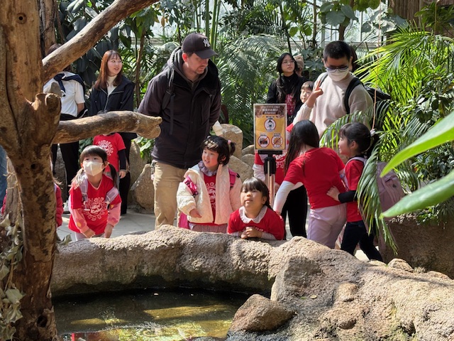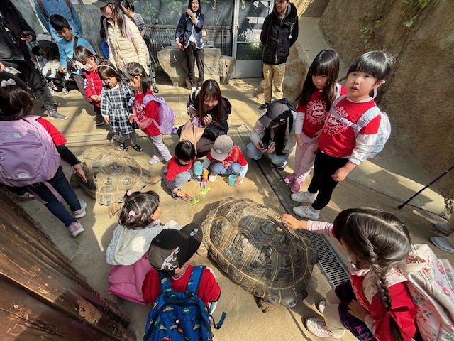 ゆっくりとランチを食べた後、子どもたちに人気だったのは、大きなからだに、鎧のような固い甲羅のゾウガメに触ることや餌やり。