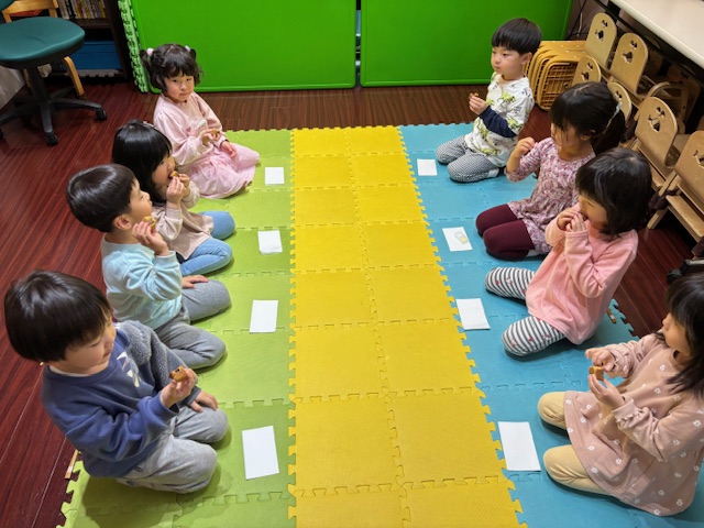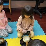まず、全員お菓子をいただいて、年長さんからお茶を点てて、小さい子たちがいただきます。