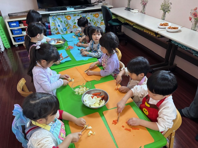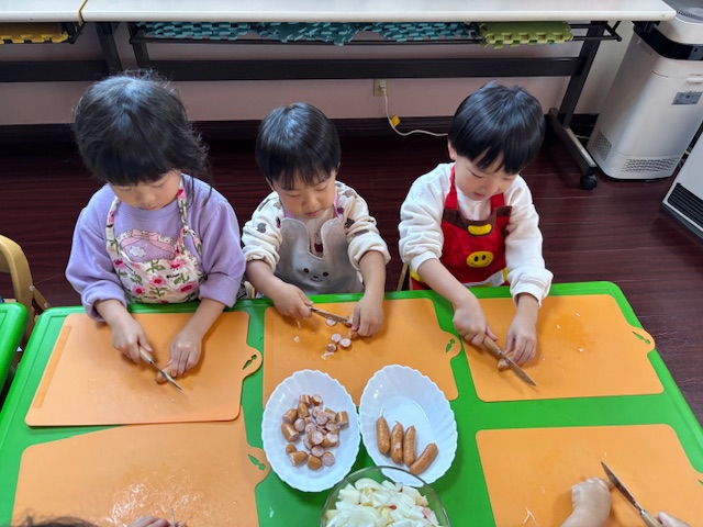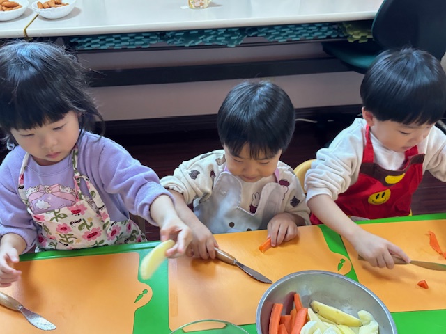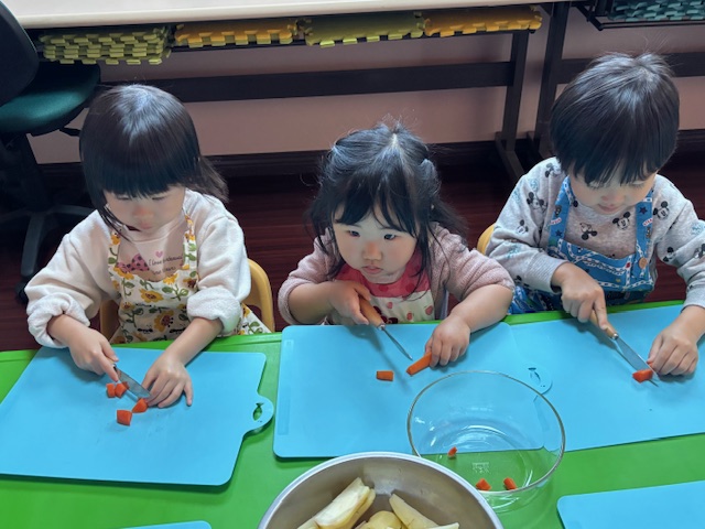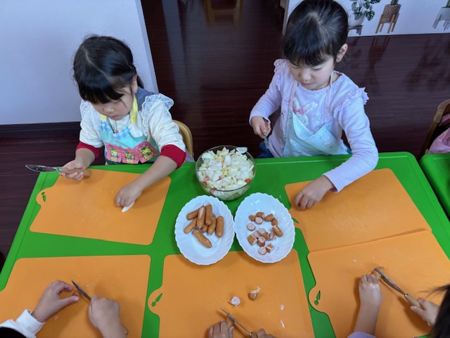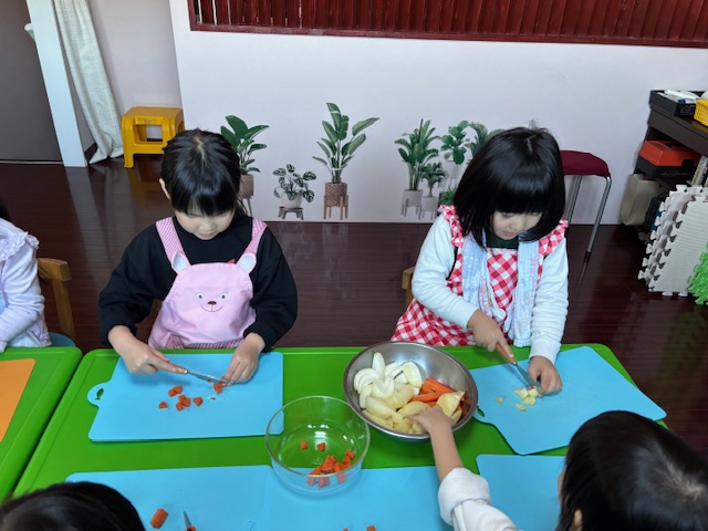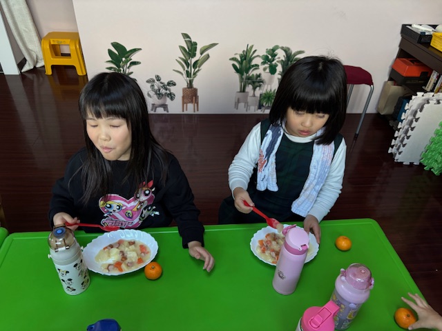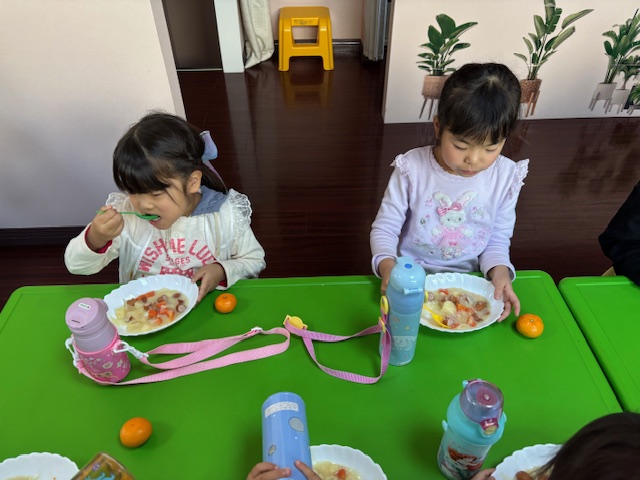 クリームシチューは子どもが好きそうなメニューなんですが、キンダー生には、あまり好きではない