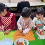 みさとちゃんは、最初のニンジンを細かく細かく切っていて、