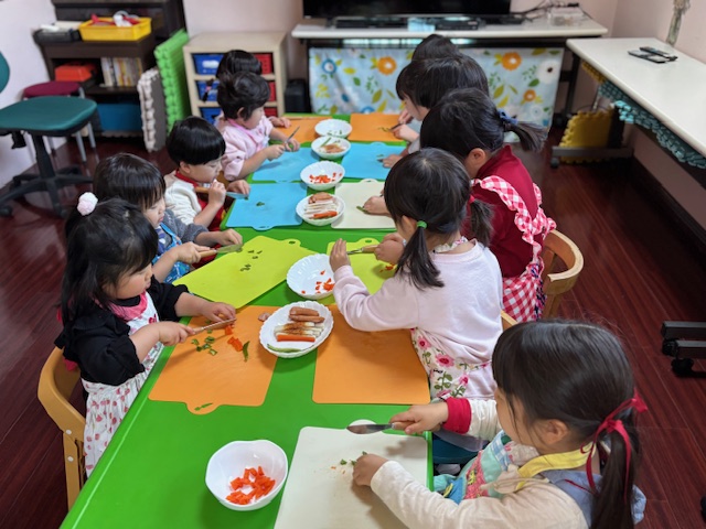 年長さん達は、小さく小さく米粒大くらいまで切っていました。