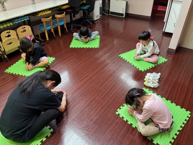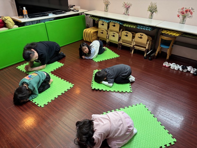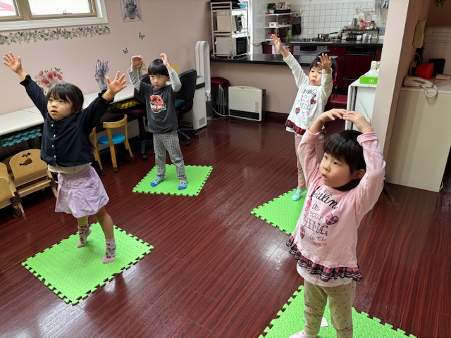 一方、年長さんの4人は、ビックリするくらい落ち着いて、しっかりストレッチもし、