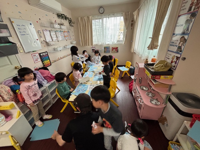 午後は雨で公園にも行けないので、クラフトをしていました。