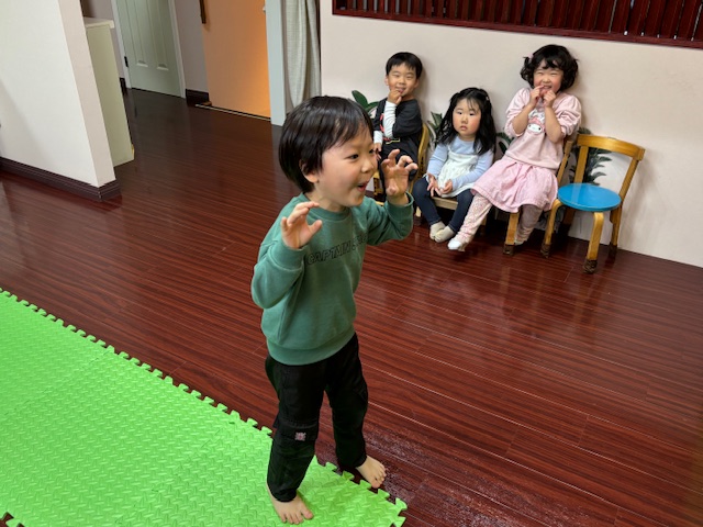 小さい子たちのグループは、れん君、とうや君は少々おふざけ気味。