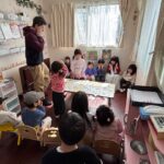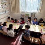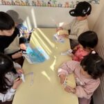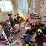 久しぶりにパパに送ってきてもらったKちゃんは、パパにしがみついて泣きましたが、すぐに持ち直して、今日もプレイタイムにも、レッスンタイムにもしっかりみんなと参加していました。