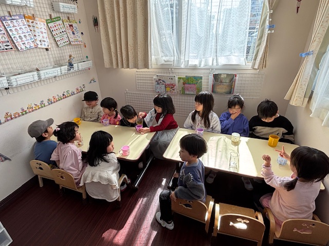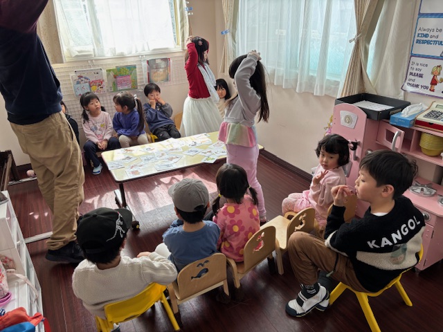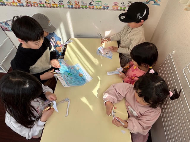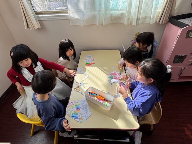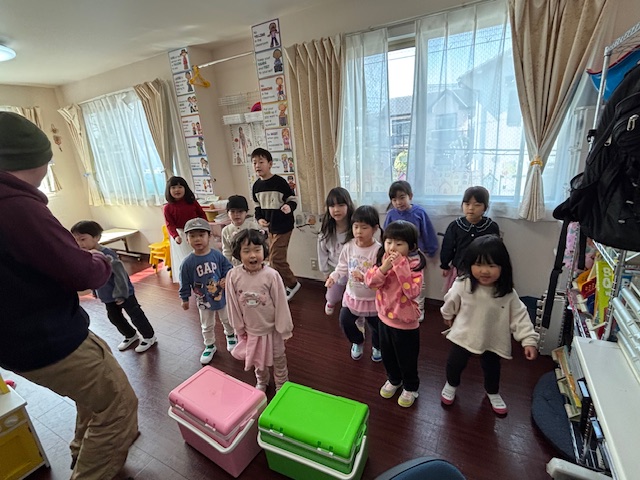 久しぶりにパパに送ってきてもらったKちゃんは、パパにしがみついて泣きましたが、すぐに持ち直して、今日もプレイタイムにも、レッスンタイムにもしっかりみんなと参加していました。
