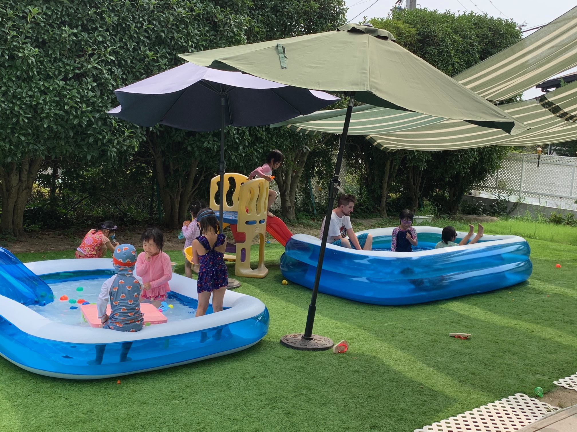 午前中はしっかりレッスンして、午後は思いきりプールで遊んで