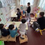 今日もお休みが3人で少人数でしたが、さらにえまちゃんが用事で午前中で帰ったので、静かなキンダーでした。