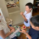 いおり君はパパがお仕事が休みでお昼に早退しました。