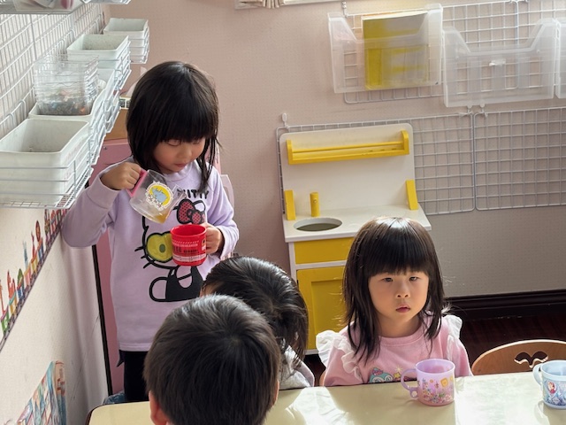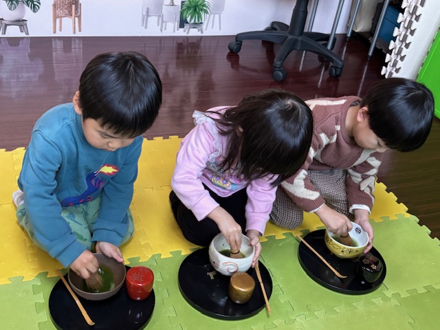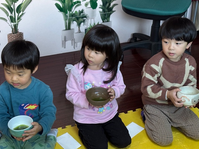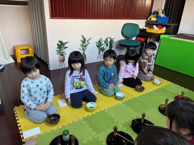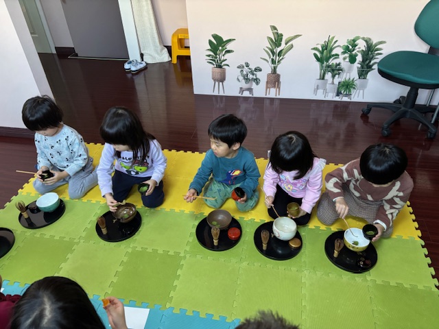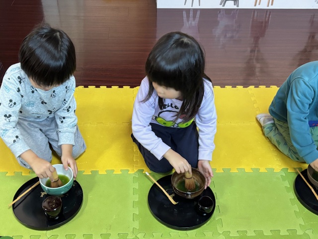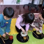 2人が頑張っているところを見てもらった後は、ランチ、そしてお茶のレッスンです。