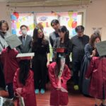 次に、年中さん、年少さん、卒園生の順に終了証を手渡し、そのあと、卒園生のパパママの挨拶。