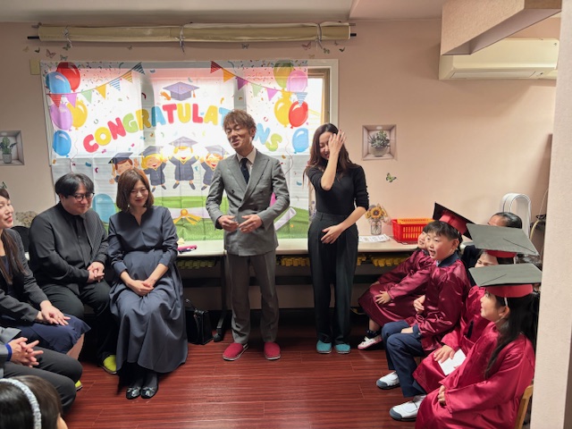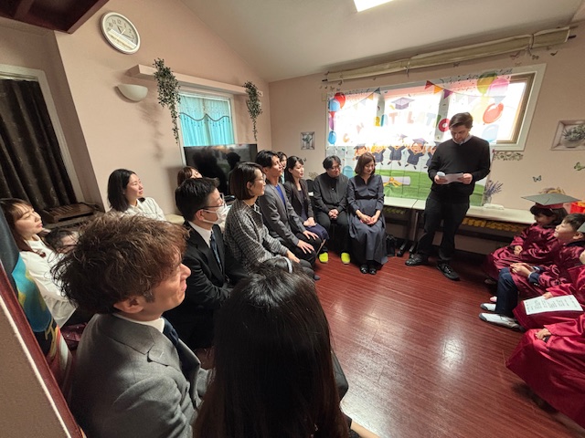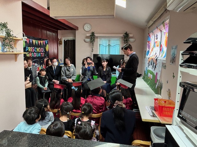 Mr.Jは通常子どもたちの前では日本語を話しませんが、今日は日本語で長い挨拶をしてくれました。