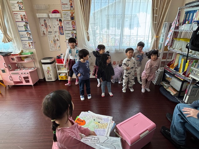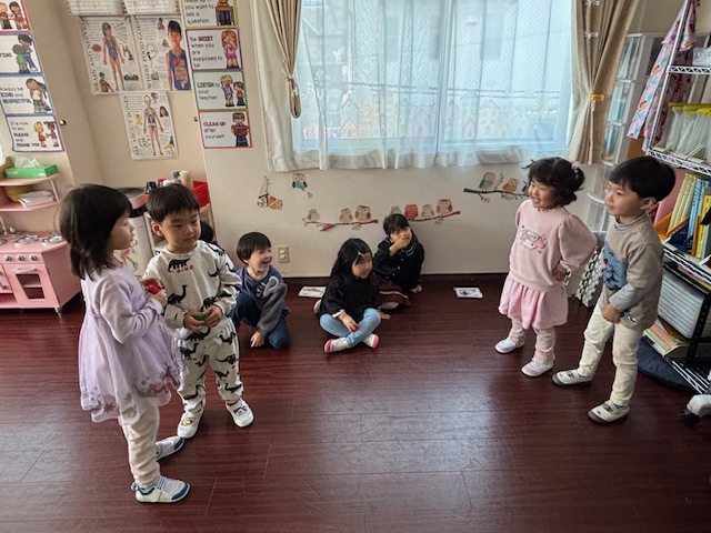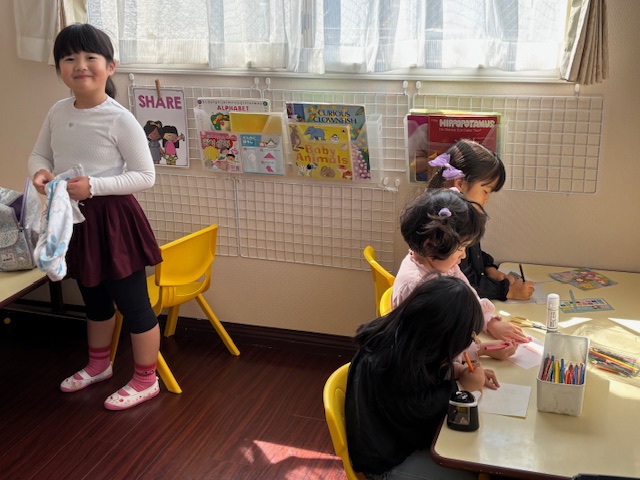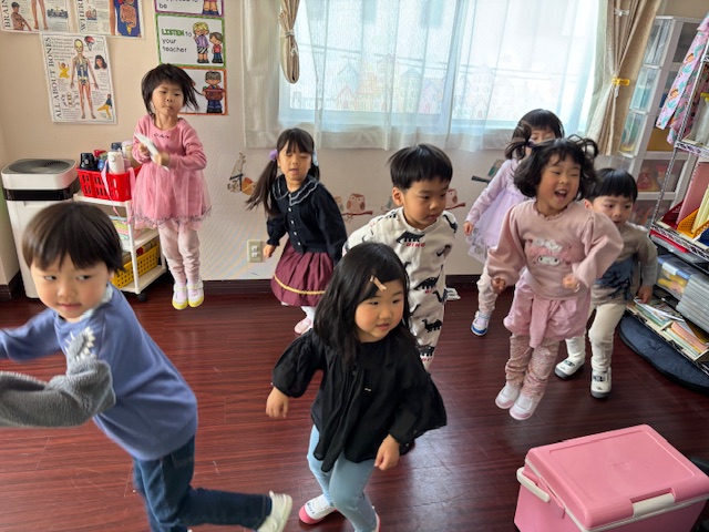 年長さんがいなくなって、キンダー生の嵩がずい分低くなりました(笑)