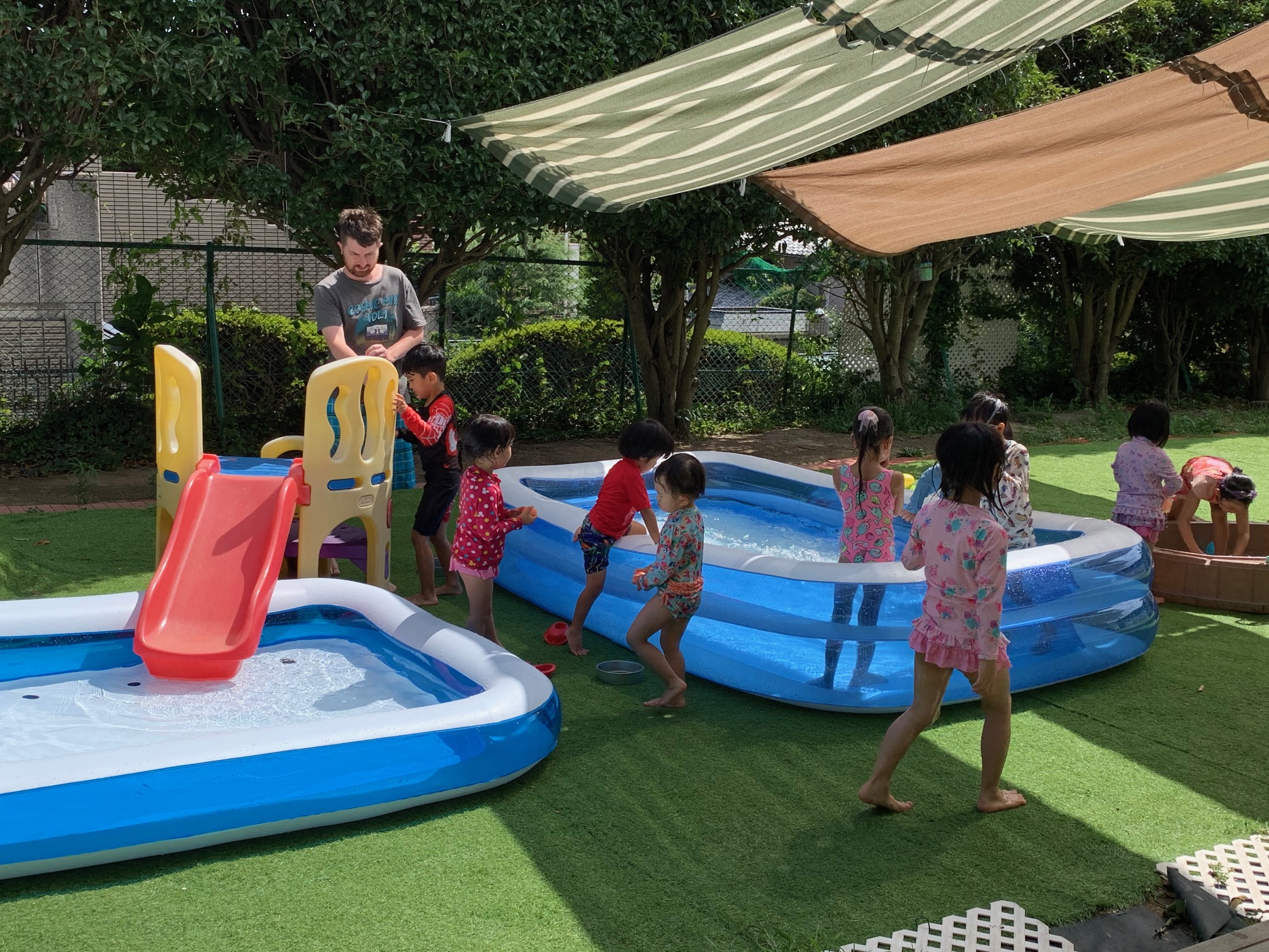 でも昼頃には晴れて暑くなってきましたので、やはりプールをしました。