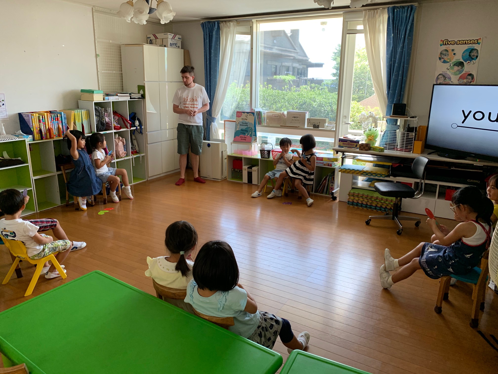 午前中楽しく英語のレッスンをして、午後はプール遊び。